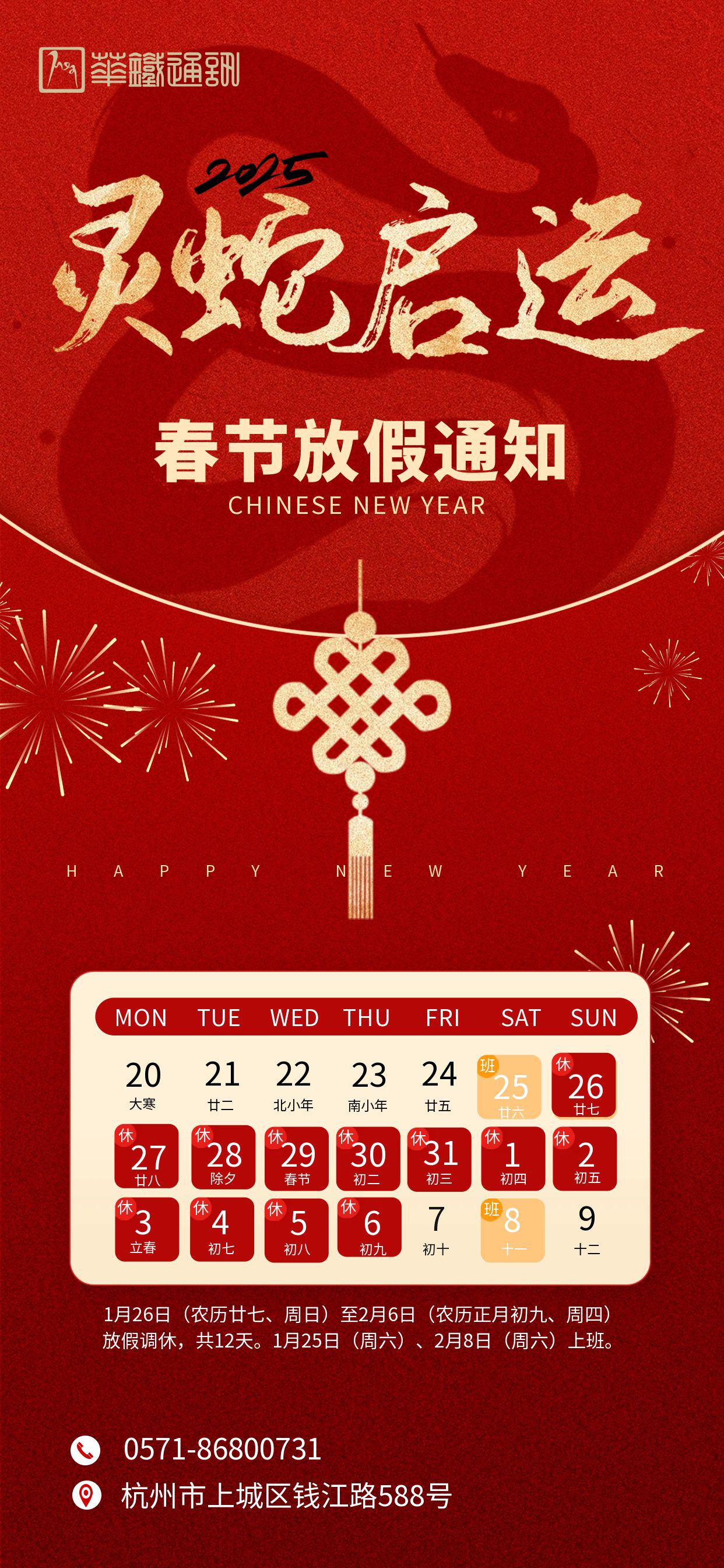 敬请留意我司在2月7日(农历正月初十、周五)后的正常工作安排,期待与您在新的一年里继续携手合作,共创辉煌!